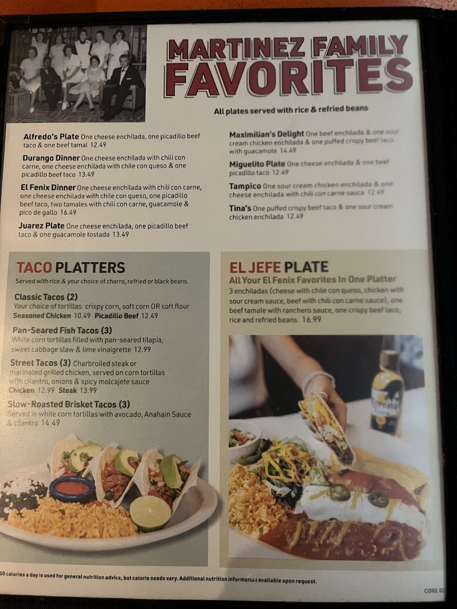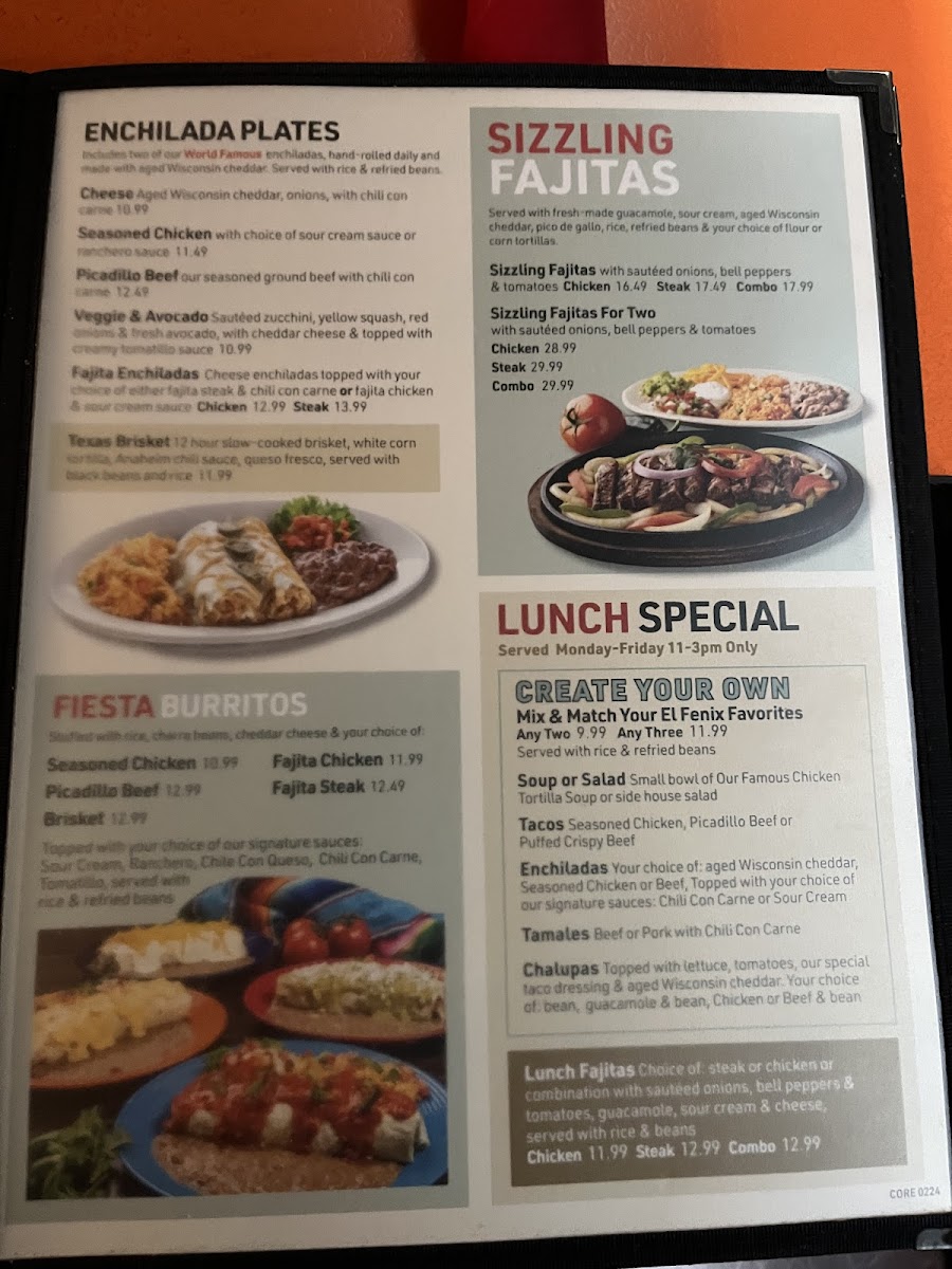 At El Fenix, the menu offers a tantalizing array of Mexican dishes that will transport your taste buds straight to the heart of Mexico. Popular items include their renowned bean and cheese nachos, perfect for a quick snack, or delve into the comforting embrace of their fajita plates, featuring tender, succulent meats paired with fresh sides. Be sure to try their flavorful refried beans or the enticing charro beans as sides – both are available for just $1.99! For those with a sweet tooth, don’t miss out on El Fenix's signature Praline options, where you can savor the classic Chewy or the indulgent Grande varieties, perfect complements to your meal.
