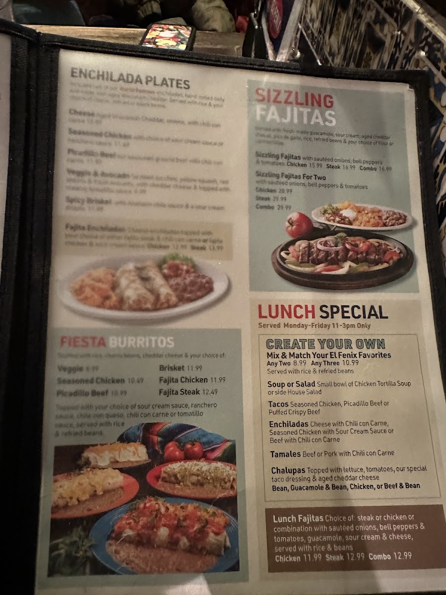In addition to the delightful food and remarkable atmosphere, parking is convenient with a nearby public lot offering three hours of free parking, making your visit all the more hassle-free. Plan your visit to El Fenix—you'll discover not just a meal, but a vibrant cultural experience that captures the heart of Mexican cuisine and Texas hospitality.